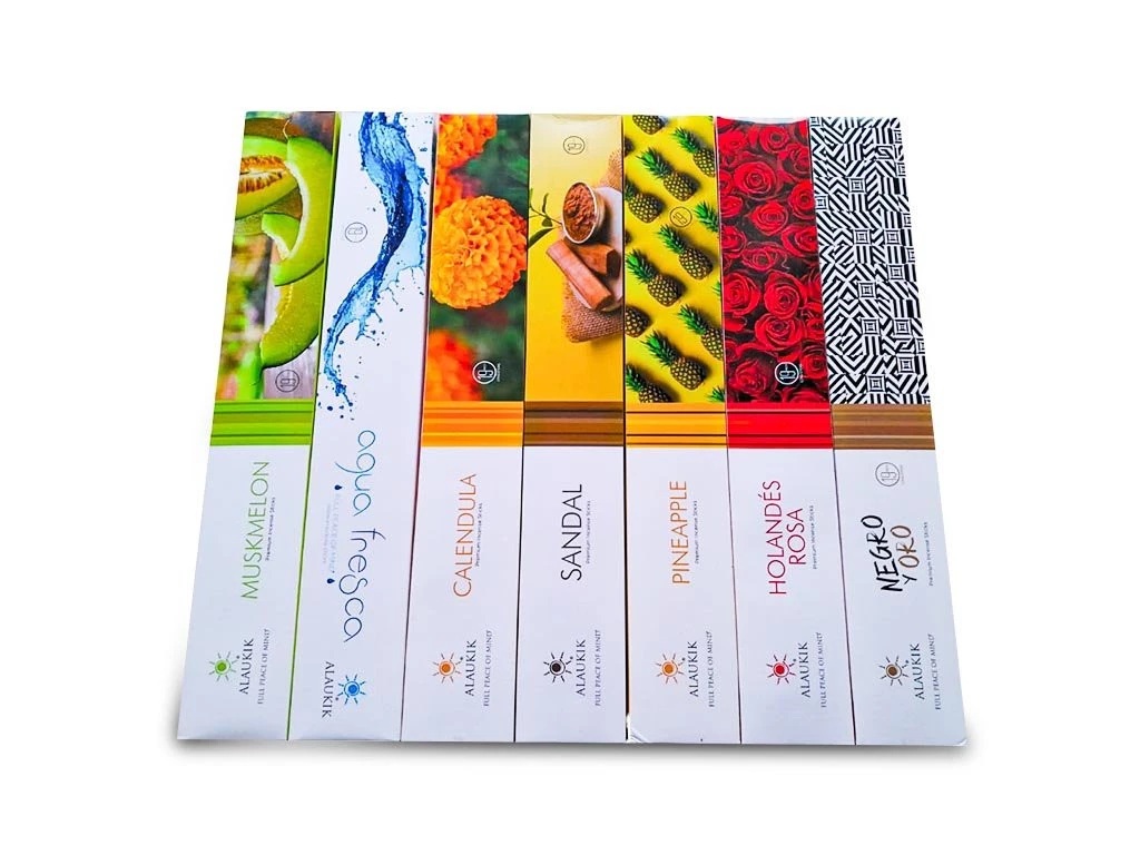 Codigo-2810CSAHUMERIOS ALAUKIK LONG 48CM • AQUA FRESH • ARBOL DORADO • BLACK AND GOLD • CAFÉ • CALÉNDULA • CITRONELLA • DURAZNO • FRUTILLA • GUAYABA • LAVANDA • LIMA • MANGO • MEDITACION • MELÓN • NAMASTE • NARANJA • NIRVANA • OM • PINEAPPLE - PIÑA • ROSA • SÁNDALO • SANDÍA